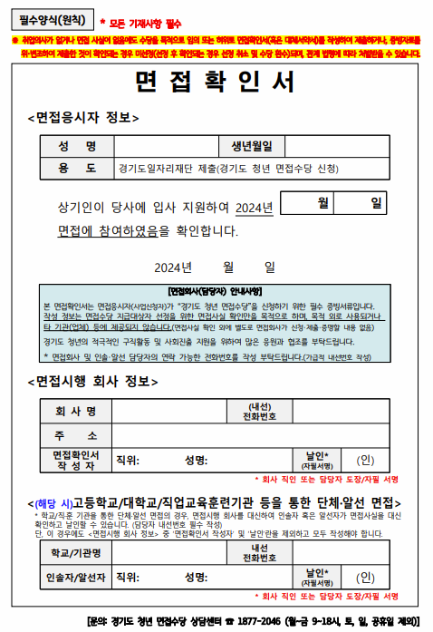 4. 면접확인서(하단에 다운로드 받으실 수 있도록 첨부해 두도록 하겠습니다)