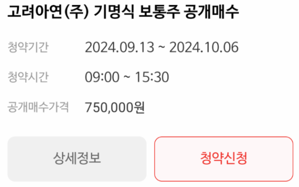 고려아연의 자사주 공개매수는 10월 4일부터 23일까지입니다. 주관사는 미래에셋이며, 주당 83만 원으로 공개매수가가 결정되었습니다.