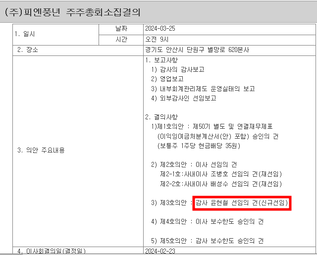PN풍년이 김동연 관련주로 분류되는 이유는 감사 최상훈 씨가 덕수상업고등학교, 국제대 동문으로 알려져 있기 때문인데, 감사 윤현철 선임의 건이라는 내용이 파악되면서 김동연 정치 테마주로 엮일 수 있었던 최상훈 감사 해임으로 관련주에서 제외가 되었기 때문에 하락한 것이라 판단한다는 의견이 있음.