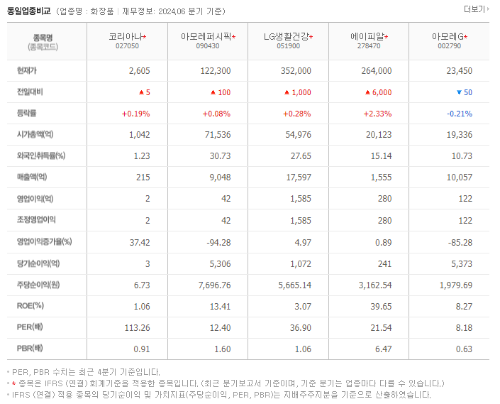 동일 업종이랑 비교해봐도 경쟁력이 매우 떨어짐.. PER 너무 높고 매출액이랑 영업이익 자체가 넘 떨어짐.. 기업 자체로는 매력이 없음.