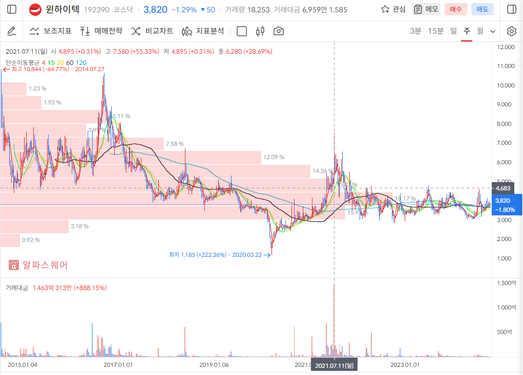 그래서 2년전 주가흐름을 알아보기 보단 주가 최저 최고점 대비 상승기간뿐 아니라 기업의 재무구조까지 함께 알아보도록 하겠습니다.