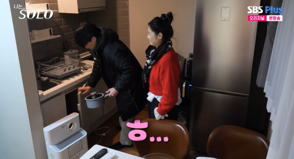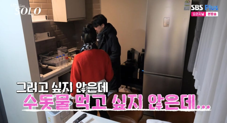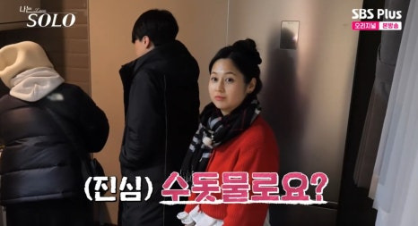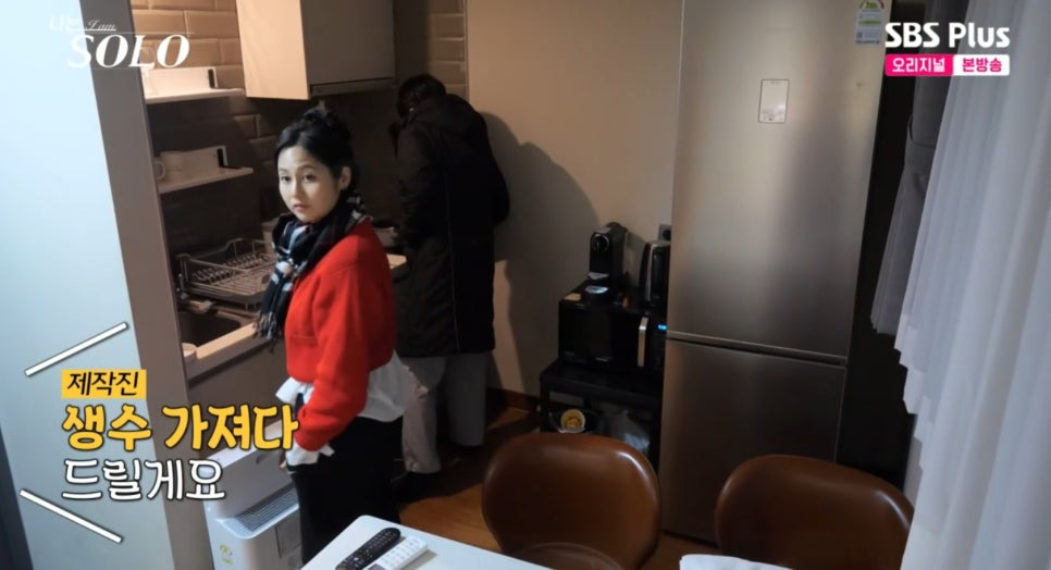 그러더니 눈을 똥그랗게 뜨더니, 제작진에게 물 가져와도 되냐고 했고