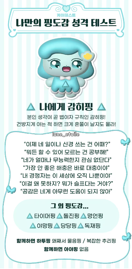 나만의 핑도감 성격 테스트 결과에 대한 세부적인 내용은 아래와 같아요.