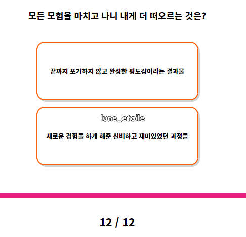 12.모든 모험을 마치가 나니 내게 더 떠오르는 것은?