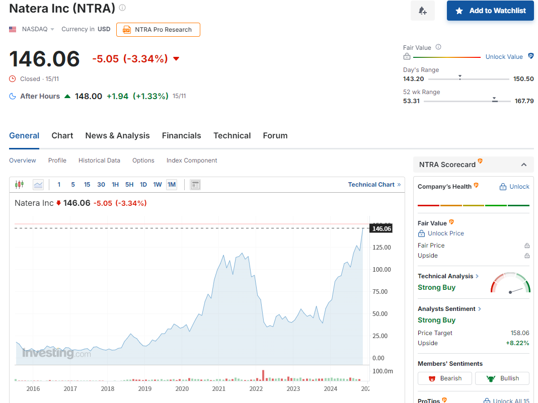 나테라(Natera, 티커: NTRA)는 유전자 검사를 통해 질병을 예방하고 진단하는 서비스를 제공하는 기업입니다. 이런 기업들이 영위하고 있는 서비스가 정밀의학 분야라고 하네요.