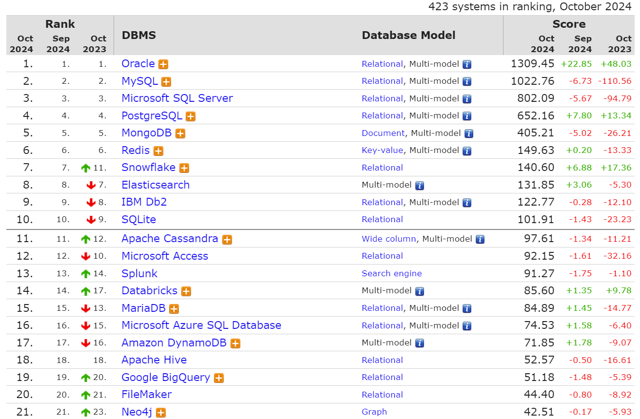Popularity ranking of database management systems.