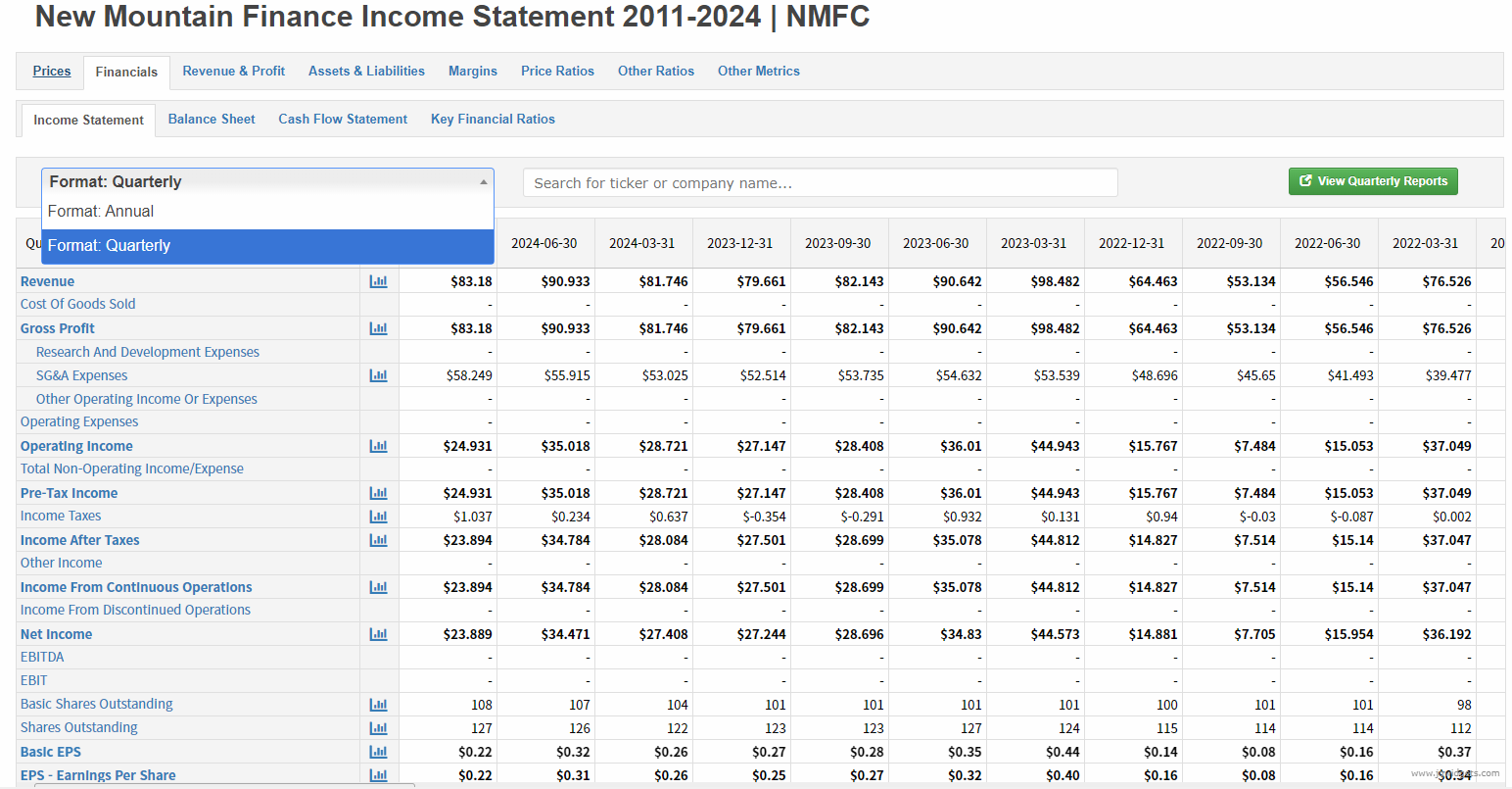 아래와 같이 Format을 클릭하면 Annual와 Quarterly를 선택해서 연간 그리고 분기별 데이터까지 확인이 가능합니다.