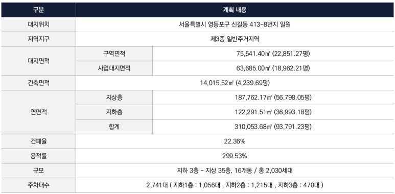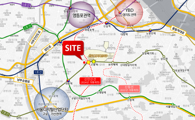 신길5동 지역주택조합은 7만5486㎡(약 2만2874평) 규모의 부지에 지하3층~지상35층 높이의 16개동, 2030세대에 달하는 대단지 아파트와 근린생활시설을 건설할 계획이라고 합니다. 7호선, 신안산선 신풍역 더블 역세권에 경인로, 서부간선도로, 올림픽대로 등 사통팔달 광역교통망 핵심 업무지구 접근이 매우 용이한 직주근접을 가지고 있다고 해요.