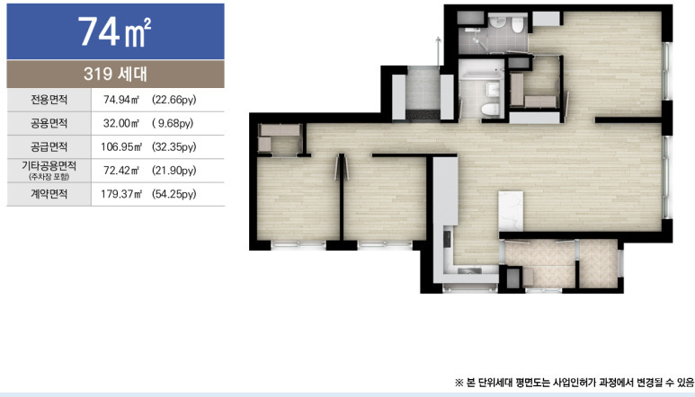 전용 51㎡, 59㎡, 74㎡, 84㎡ 4개의 주택형 공급할 예정이라고 소개를 하고 있어요. 최근 제가 생각하고 있는 가장 이상적인 형태의 아파트 평형인거 같습니다. 점점 대형평수보다는 1인 혹은 2인가구 혹은 3인가구가 거주하기 적합한 소형 평수가 앞으로 더 인기가 있어질거 같다는 생각에서 그렇습니다.