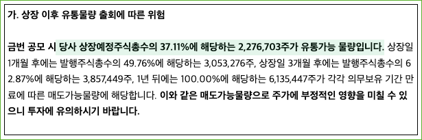 - 의무보유 확약 비율이 낮아 상장 초반 주가 변동성 우려.