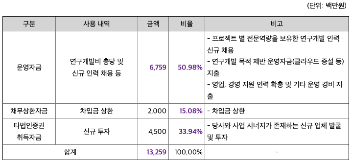 - 재무 상태: 투자설명서에 따르면 현재는 영업이익 적자 상태입니다. 그래서 기술특례 상장 요건을 충족해 상장을 추진 중이에요.