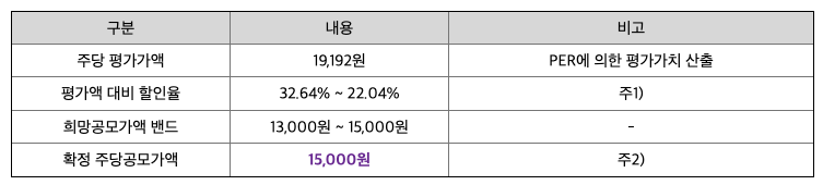 - 결과: 수요예측에서 밴드 상단인 15,000원으로 확정.