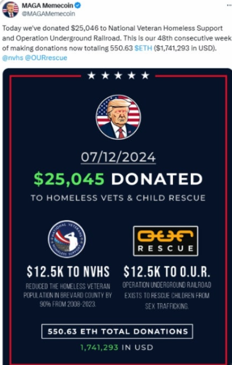 그리고 마가 공식 트위터 계정(팔로워 32.9K)에서는 항상 트럼프를 응원하고 이슈화시키며, 기부까지 진행하고 있습니다. 머지않아 우리나라 총선이나 대선과 같은 선거에서도 이런 코인들이 등장할 거 같네요!!