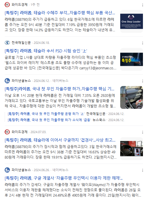 사실 올해 1분기까지만 해도 라이콤 주가는 52주 최저가를 찍을 정도로 그다지 좋은 흐름을 보였지만 최근에는 테슬라 자율주행차 관련주 등의 소식으로 주가가 급등한 상황이라 투자하기에는 조금 무리인 감이 없지않아 있어요.
