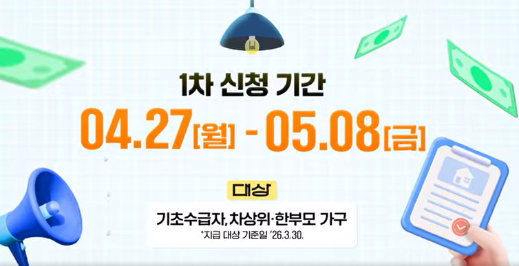 - ✅ 신청 기간은 2026년 5월 18일 ~ 7월 3일이며, 온라인 또는 주민센터에서 신청 가능합니다.