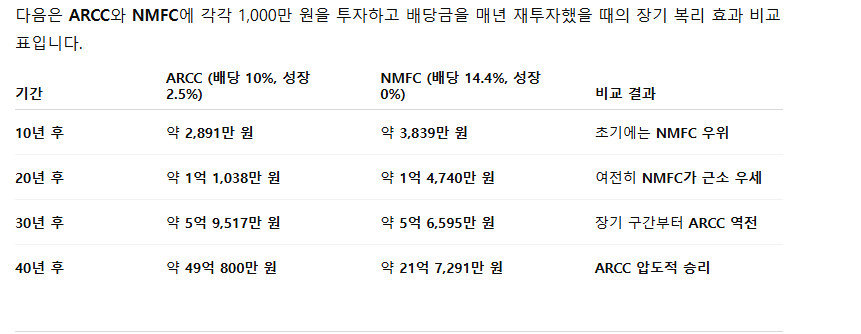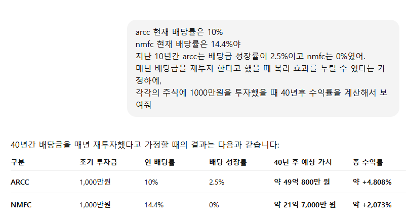 ARCC, NMFC 배당 수익 계산