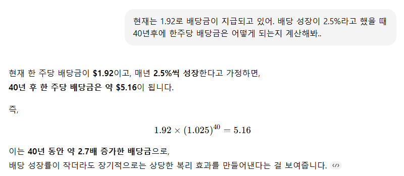 제가 GPT에 한번 물어봤어요. 배당 성장률을 고려해서!!