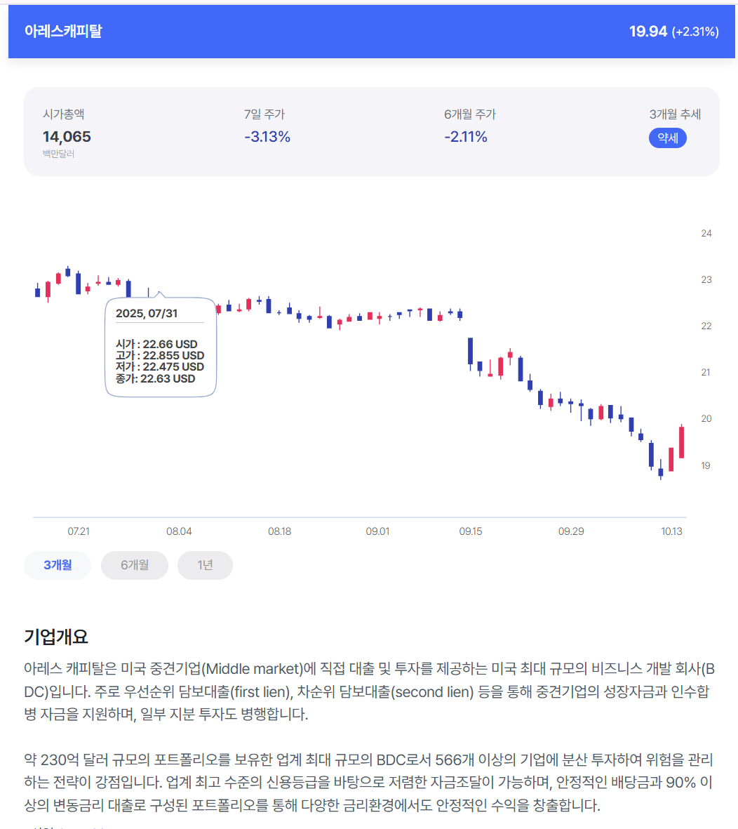 ARCC 기업 종목을 검색해 보았습니다.