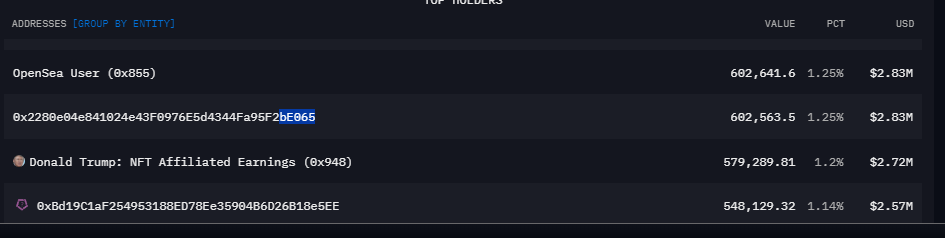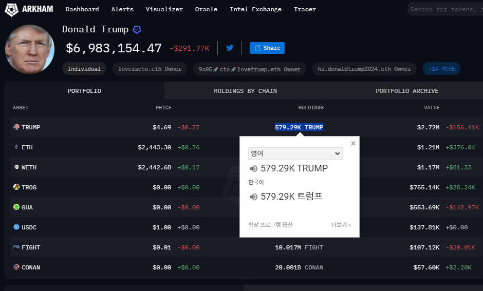 트럼프는 마가 코인 1.22% 보유하며 TOP10 HOLDER 자리에 위치해 있습니다.