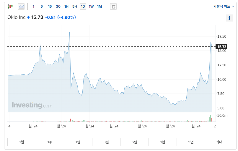 샘알트만 오픈AI 창업자와 캐시우드(돈나무) 언니도 오클로에 투자를 했다는 기사가 있어서 더 관심이 가는 기업입니다. 2013년에 캘리포니아에 본사를 둔 소형원전 기업으로 미래 AI 구동 과정에서 부족한 전력 수요에 대비하기 위해 이 회사에 투자를 했다고 밝혔죠.